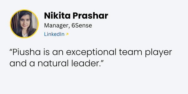 Hey! I’m Piusha, and my journey started in B2B hospitality before I swapped room keys for product launches.Along the way, I earned an MBA from Universita Bocconi Italy, where I discovered that dolce isn’t just fun to say—it’s also delicious.After that, I dived headfirst into B2B SaaS. Currently obsessed with AI agents.